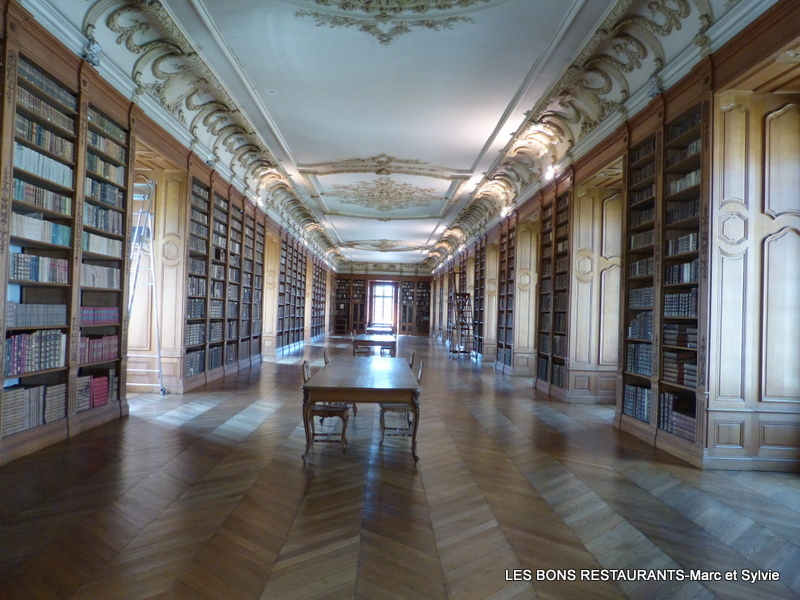 | Saint-Mihiel est une commune située dans le département de la Meuse. Nous avons eu le loisir de nous y arrêter lors d'une de nos dernières sorties dans cette région bien sympathique! Si vous aimez les légendes vous pouvez voir ou revoir le début de ce voyage en cliquant sur ce lien! Cliquez sur les photos pour les agrandir! L'histoire de Saint-Mihiel est intimement liée à celle de l'abbaye bénédictine Saint-Michel dont la fondation remonterait au milieu du 8e siècle lorsque le roi Pépin le Bref fit don en 755 à l'abbé de Saint-Denis de Fulrad d'un domaine situé au bord du ruisseau de la Marsoupe en vue d'y installer une communauté monastique! Vers 815, l'abbé prieur Smaragde de Saint-Mihiel, proche et conseiller de Charlemagne, transféra l'abbaye devenue bénédictine au confluent de la Marsoupe et de la Meuse. Cela marqua les débuts du rayonnement spirituel et intellectuel de l'abbaye et plus largement de la cité! Les premiers livres,manuscrits, furent rassemblés, dès cette époque, dans les dépendances de l’église. Au long des siècles, leur nombre s’accrut, particulièrement avec l’invention de l’imprimerie au 15e siècle. Après avoir été déplacé plusieurs fois, le fonds fut installé magnifiquement, vers 1775, dans les salles spécialement aménagées à cet usage. La ville de Saint-Mihiel a le rare privilège aujourd’hui de toujours posséder une bonne partie de ce fonds constitué par les bénédictins, et de toujours pouvoir le présenter dans des salles et sur des rayons qu’ils n’ont quasiment jamais quittés. Et ceci malgré des pertes dues à l’état d’abandon dans lequel la bibliothèque fut laissée entre 1791, date à laquelle elle fut confisquée au profit de la Nation, et 1848, date à laquelle elle fut confiée à la ville de Saint-Mihiel. Depuis deux siècles, la bibliothèque se présente comme une longue salle de cinquante mètres et éclairée par 17 fenêtres. Le plafond et les boiseries furent minutieusement restaurés après la guerre de 1914 - 1918 qui les avait gravement endommagés. Nous remercions infiniment la personne qui nous a guidé vers la bibliothèque et qui nous a autorisé, exceptionnellement, à prendre en photo cette magnifique bibliothèque bénédictine! À demain!