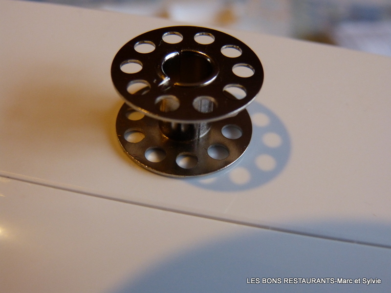 Vous avez été nombreuses à participer à notre jeu. Je vous en remercie et je vous félicite! En effet, c'est bien une machine à coudre que papa Noël m'a apporté cette année! Je vous ai fait quelques photos de mes premiers essais! À tout à l'heure pour ces premiers points de couture!