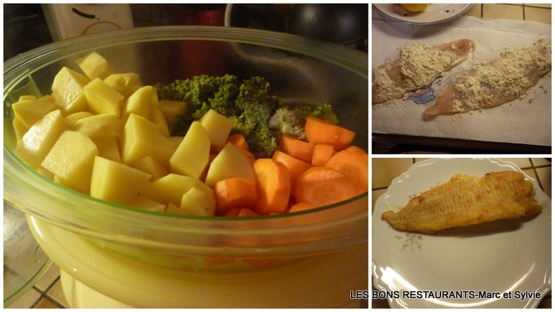 (2 personnes- préparation 10 minutes- cuisson 20 minutes) -2 filets de cabillaud -2 pommes de terre -2 carottes -2 bouquets de brocolis -1 citron -2 oeufs -20cl de vin blanc -10cl de crème fraîche -40g de beurre -sel, poivre Pelez, lavez et coupez les légumes.