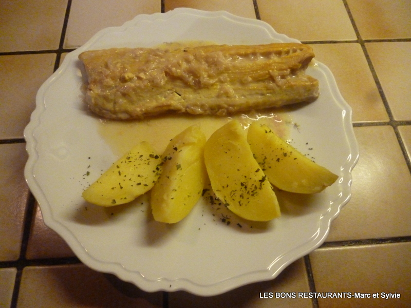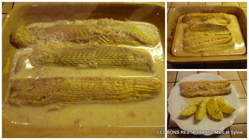 Posez-les dans un plat allant au four. Versez la sauce sur le poisson. Mettez le plat dans le four à 210° pendant 20 minutes. J'ai accompagné mes dos de lieu noir de pommes de terre vapeur!