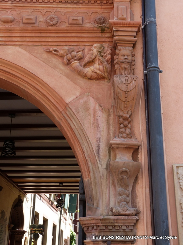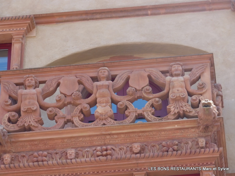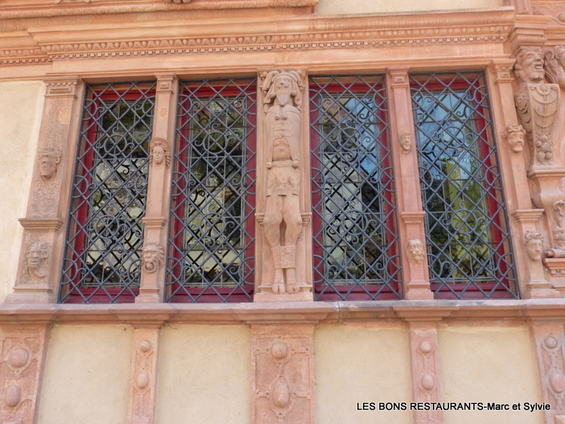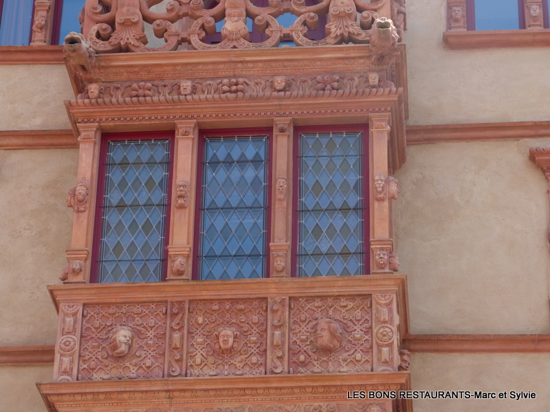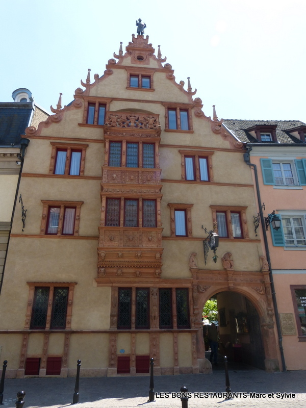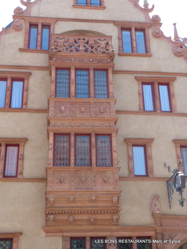 | Colmar, son charme, ses maisons à colombage, ses quartiers si typiques.....il est bien difficile de ne pas en tomber amoureux! Vous pouvez voir ou revoir notre balade à Colmar depuis le début en cliquant sur ce lien! Cliquez sur les images pour les agrandir! (11 clichés) La maison des Têtes de Colmar, construite en 1609 pour le compte du marchand Anton Burger (Antoine Burger), stettmeister de Colmar de 1626 à 1628, est l'une des plus connues de Colmar. Le pignon est surmonté d'un petit tonnelier en étain signé Auguste Bartholdi. Elle pris place au sommet du pignon après l'affectation de l'immeuble à la Bourse aux Vins de Colmar! La maison des têtes est acquise en 1698 par Baudoin de Launoy, puis Guillier, "trésorier de l'extraordinaire des guerres", qui la fit restaurer en 1738. Cette maison est de style Renaissance. L'oriel occupe deux étages au centre du bâtiment, il est muni d'un garde-corps ajouré en pierre orné de figures bifides. La façade comporte deux étages-carrés séparés par des bandeaux et trois niveaux sur le pignon. La Maison des Têtes est attribuée à l’architecte Albert Schmidt, également auteur de l’ancien presbytère protestant et de la maison dite des Chevaliers de Saint Jean. L'édifice doit son nom à 106 petites têtes humaines qui ornent l'oriel est les meneaux des fenêtres. À noter que les fenêtres sont de largeurs différentes et que leurs placements verticales est irrégulier. À demain!