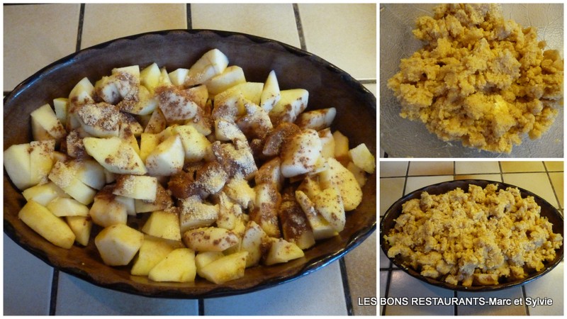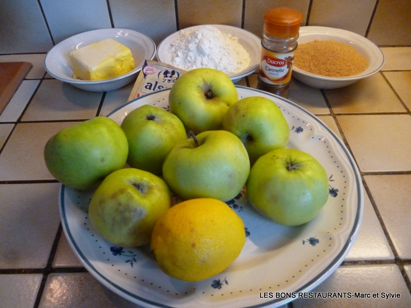 (6 personnes- préparation 30 minutes- cuisson 30 minutes) -7 pommes -1 citron -150g de cassonade -150g de farine -125g de beurre -1 càc de cannelle -1 sachet de sucre vanillé Pelez, lavez et coupez les pommes en dés.