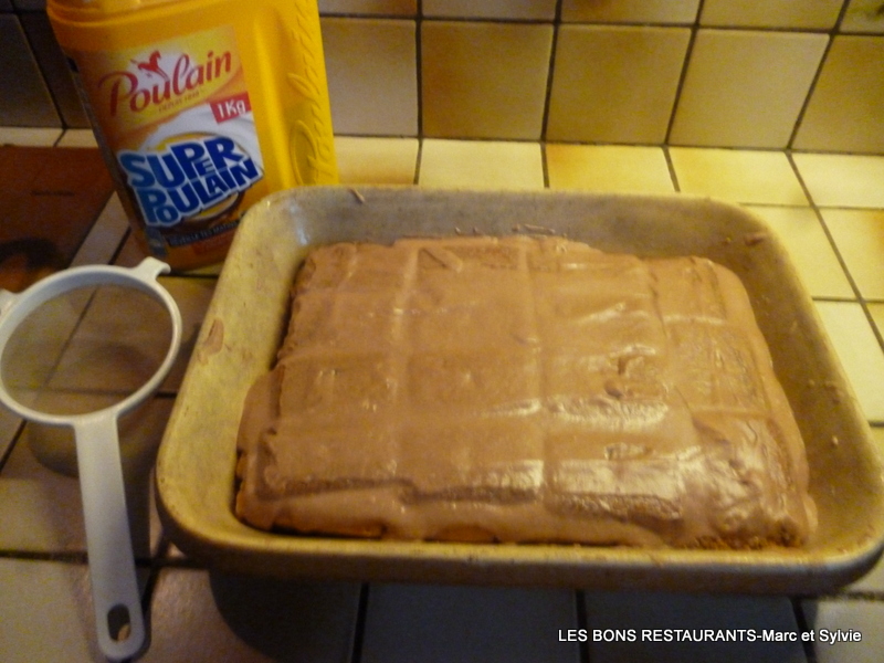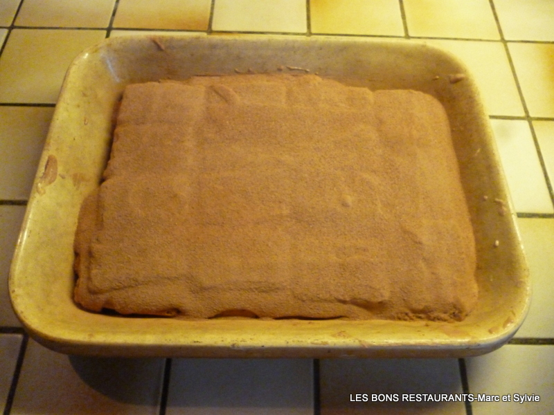 Mettre une deuxième couche de biscuits. Recouvrir du reste de la crème. Mettez un film alimentaire sur le plat et placer-le au réfrigérateur au moins 4 heures. Au moment de servir saupoudrez de chocolat en poudre.