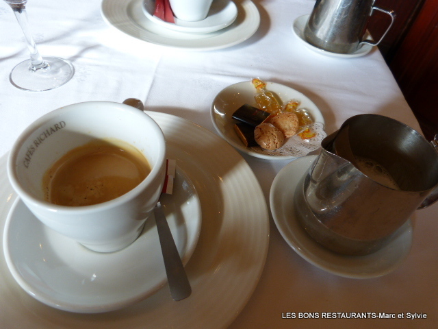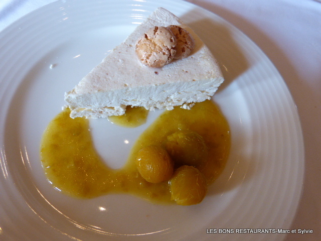 Ce dessert est composé d'un parfait glacé aux éclats de macarons et bergamote et d'un coulis aux mirabelles! Je vous le conseille! Tout Nancy y était! Nous terminons par un café crème!
