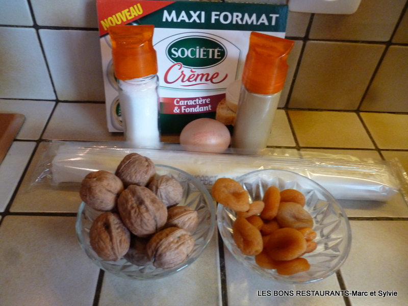 Dans le bol mixeur de votre robot mixez les noix, les abricots et le fromage.