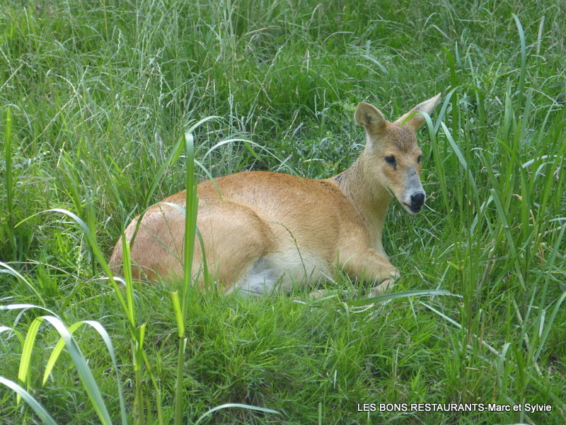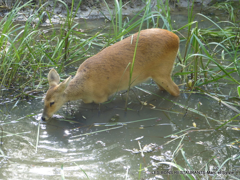 Nous sommes allés le visiter et nous avons décidé de vous le présenter sous la forme d'un fil rouge! Et notre fil rouge, aujourd'hui, nous conduit du côté des cerfs d'eau chinois! Vous pouvez voir ou revoir cette promenade depuis le début en cliquant sur ce lien! Cliquez sur les photos pour les agrandir! (10 clichés) Originaire de Chine et de Corée cet hydropote a été introduit dans des parcs de Grande-Bretagne.