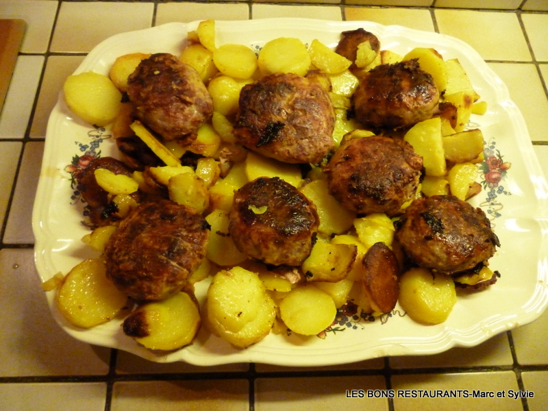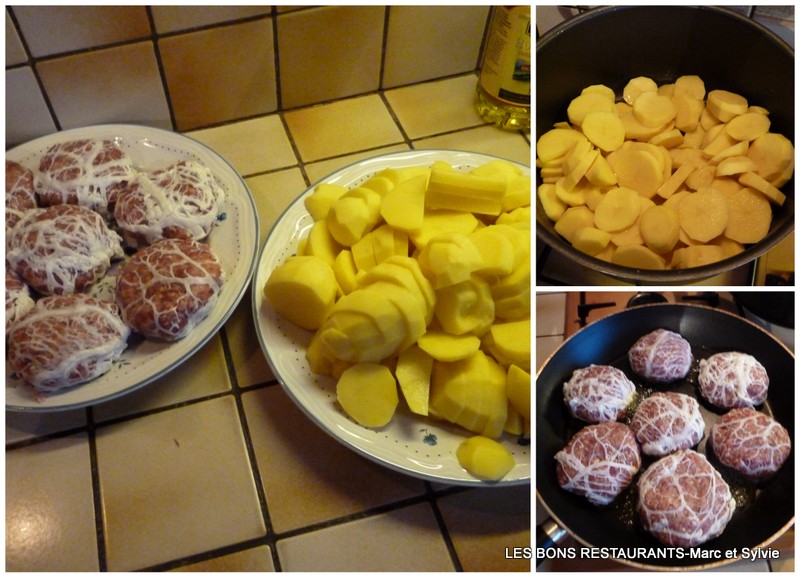 Faites revenir les pommes de terre dans l'une et faites cuire les bougnettes sur feu doux doux dans l'autre.