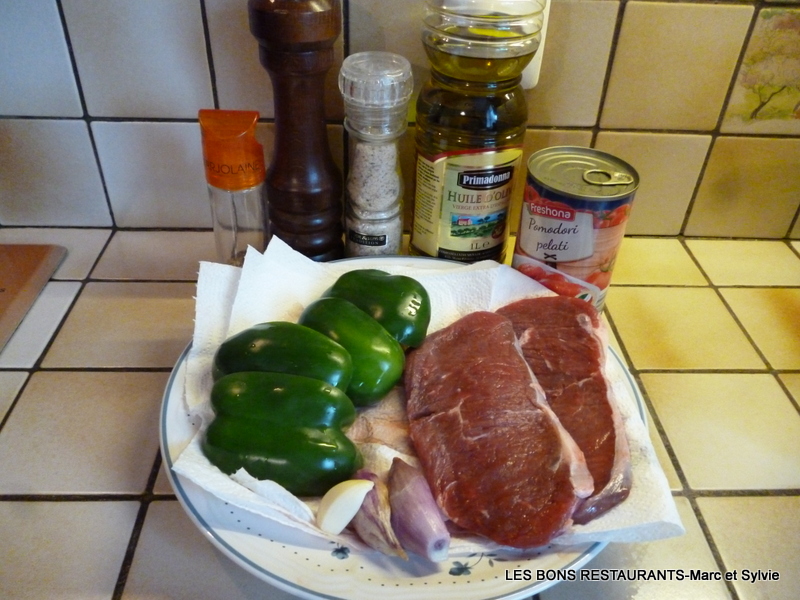 Aujourd'hui, je cuisine des biftecks aux tomates et poivrons! Les ingrédients pour cette recette: