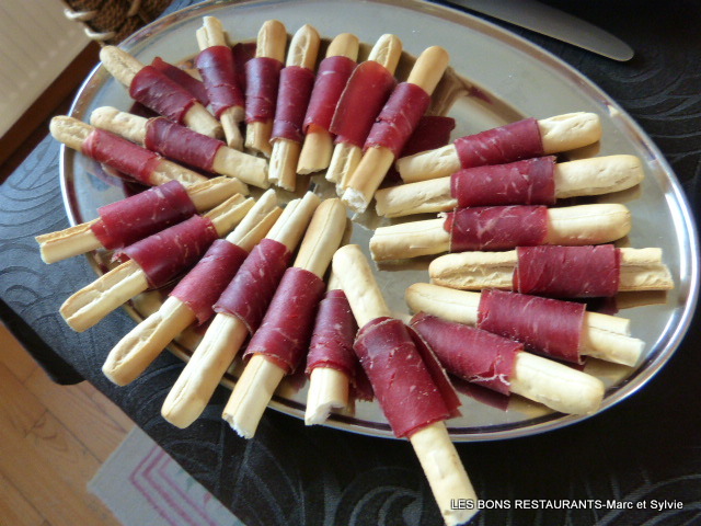 Les gressins sont entourés de viande de grison! Un petit délice.