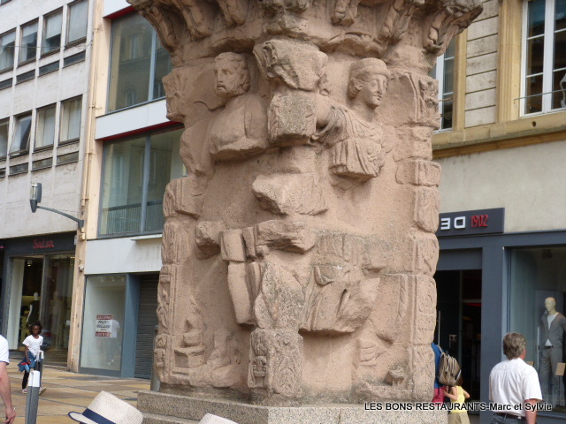 Merten, village situé en Moselle, Mr Fuchs découvre une colonne votive d’une dizaine de mètres de hauteur en creusant un puits dans son jardin en 1878. L’original de ce monument se trouve au musée de la Cour d’Or à Metz, et c'est une réplique qui fut érigé à l’entrée de la rue Serpenoise. D’époque gallo-romaine, cette colonne est décomposée en 3 morceaux :