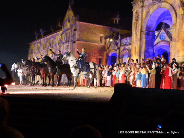 Puis, après avoir diné, nous nous sommes installés sur l'esplanade de la basilique de Domrémy-la-Pucelle afin de suivre le spectacle monumental articulé autour d'une scénographie visuelle totalement intitulée "L'Enquête Jeanne d'Arc".