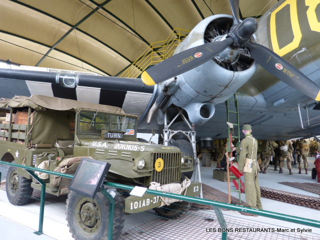 La première partie de ce musée est intitulée, le C-47! Il a la forme d'un parachute! À l'intérieur un avion, le C-47! Vous pouvez voir ou revoir notre balade dans le Cotentin en cliquant sur ce lien! Cliquez sur les photos pour les agrandir! (10 clichés) En 1983, en présence de Bob Murphy, éclaireur de la 82e division aéroportée, a eu lieu l’inauguration d’un bâtiment en forme de parachute qui abrite un avion C-47. Cet avion a lui-même participé aux opérations de largage sur Sainte-Mère-Église dans la nuit du 5 au 6 juin 1944 et dans les missions qui suivirent.