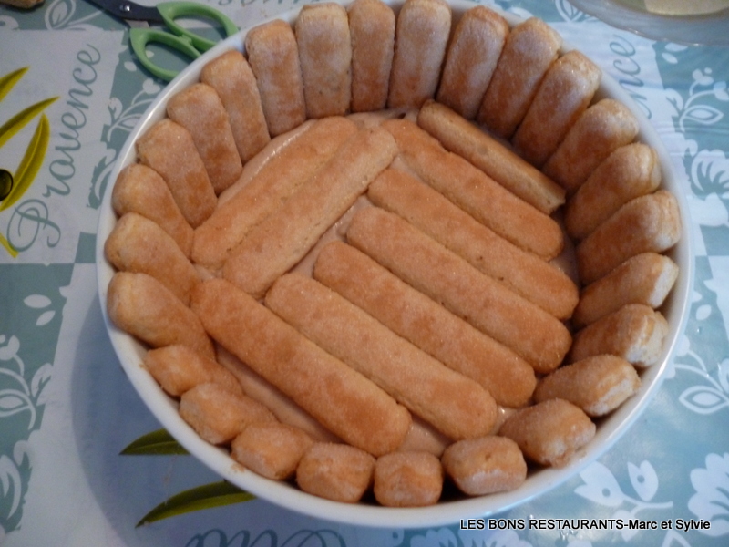 Versez une couche de la préparation à la crème de marrons. Recouvrez d'une couche de biscuits. Recouvrez de crème.... Vous pouvez faire plusieurs couches. Terminez par une couche de biscuits.