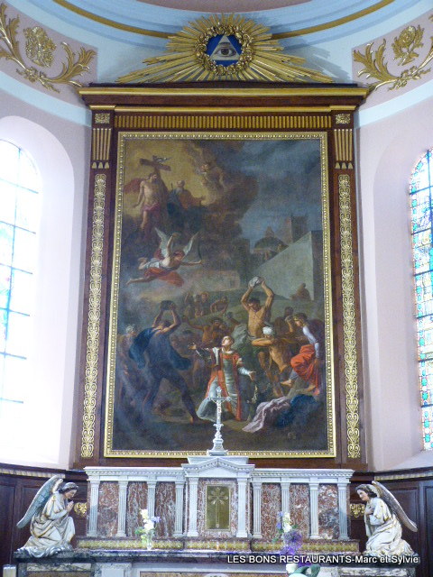 Les trois retables, réalisés en 1800 pour remplacer les précédents retables détruits pendant la Révolution, représentent la nativité de la Vierge....