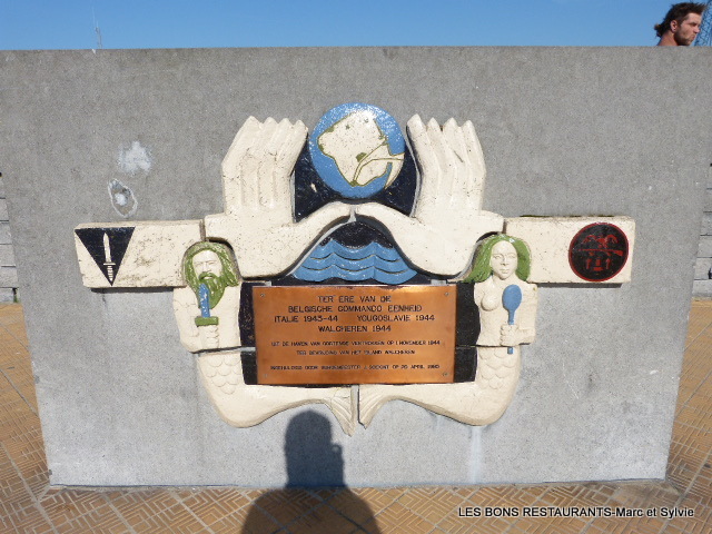 "A L'ERE DU UNITE DE COMMANDE BELGE ITALIE 1943-44 YOUGOSLAVIE 1944 WALCHEREN 1944 DU PORT D'OSTEND DEPUIS LE 1ER NOVEMBRE 1944 POUR LIBÉRER L'ÎLE DE WALCHING INITIALÉ PAR MAYOR GOEKINT LE 20 AVRIL 1985 " Notre promenade nous conduit place Zeeheldenplein....