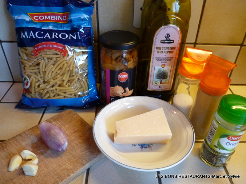 Aujourd'hui, je cuisine des pâtes aux giroles. Les ingrédients pour cette recette: