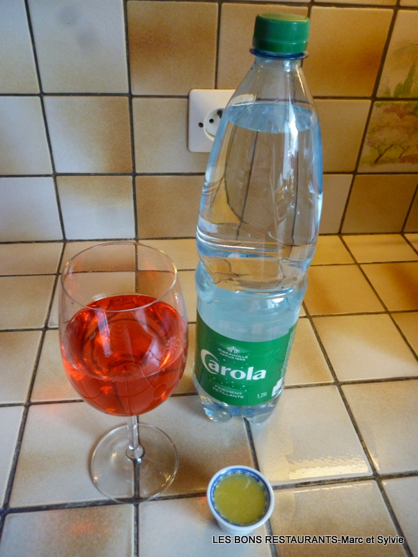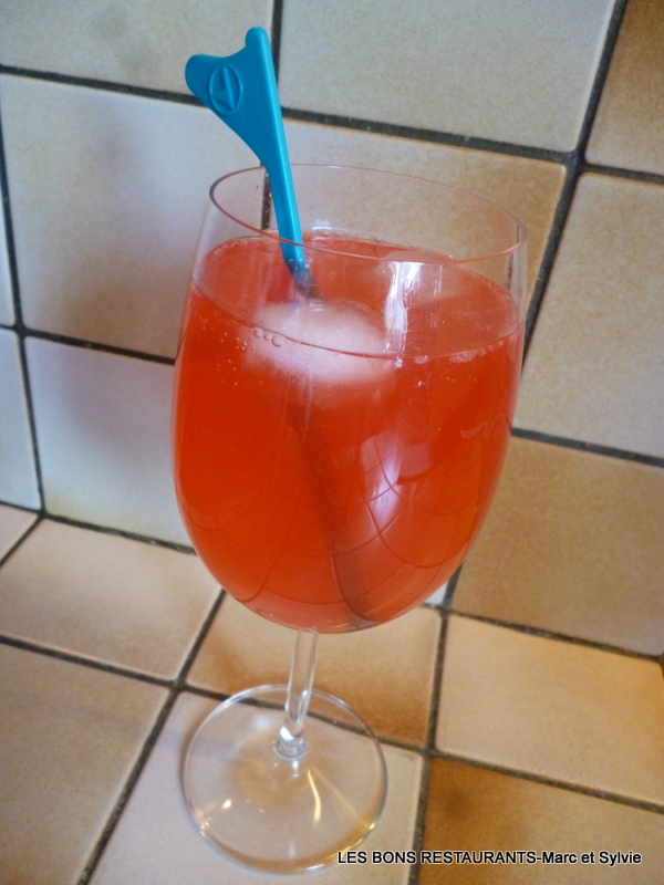 Remplissez le verre d'eau gazeuse. À déguster bien frais et avec modération!