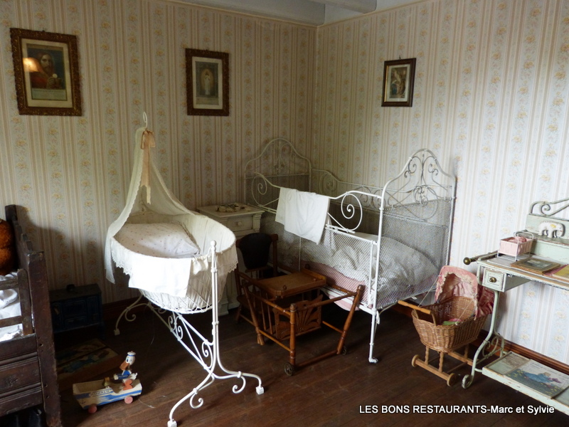 Remarquez le petit landau de poupée! Nous arrivons à la chambre des parents!