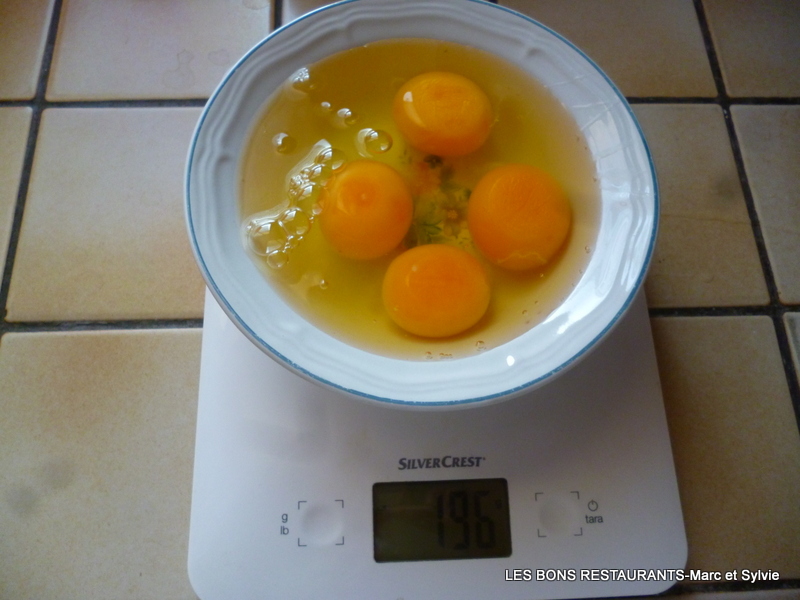-1/2 paquet de levure chimique La première étape est de peser les oeufs puis de peser les autres ingrédients en fonction du poids des oeufs!