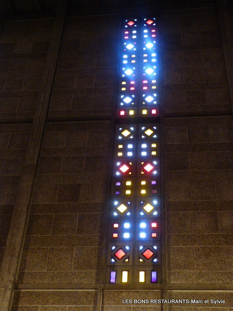 L'église saint-Joseph ne compte pas moins de 6500 verres, situés dans de hautes verrières verticales capables de filtrer la lumière extérieure!