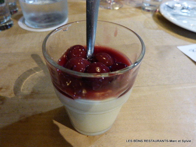 La crème à la vanille avec des cerises au sirop fait le bonheur de Marc.
