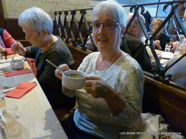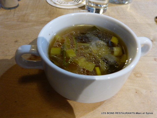 Le potage du jour, un consommé aux poireaux, nous réchauffe!