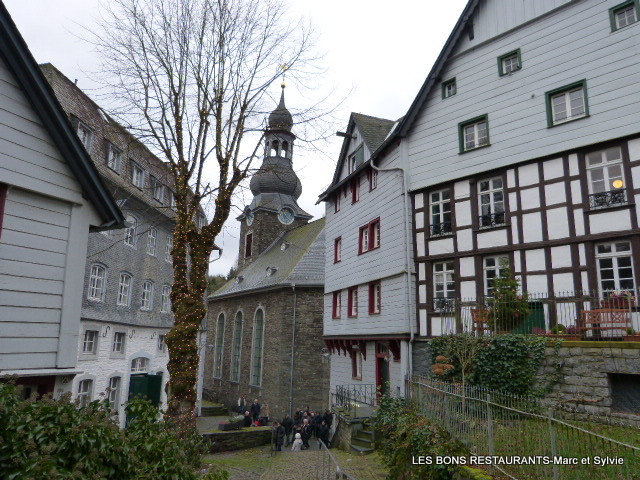 On y accède par un ponton qui surplombe la Rur, et depuis lequel on découvre une intéressante perspective sur l’arrière des maisons qui bordent le torrent.