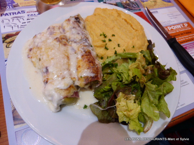 Pour la suite de notre repas, Marc choisit les andouillettes sauce au camembert. Un délice!