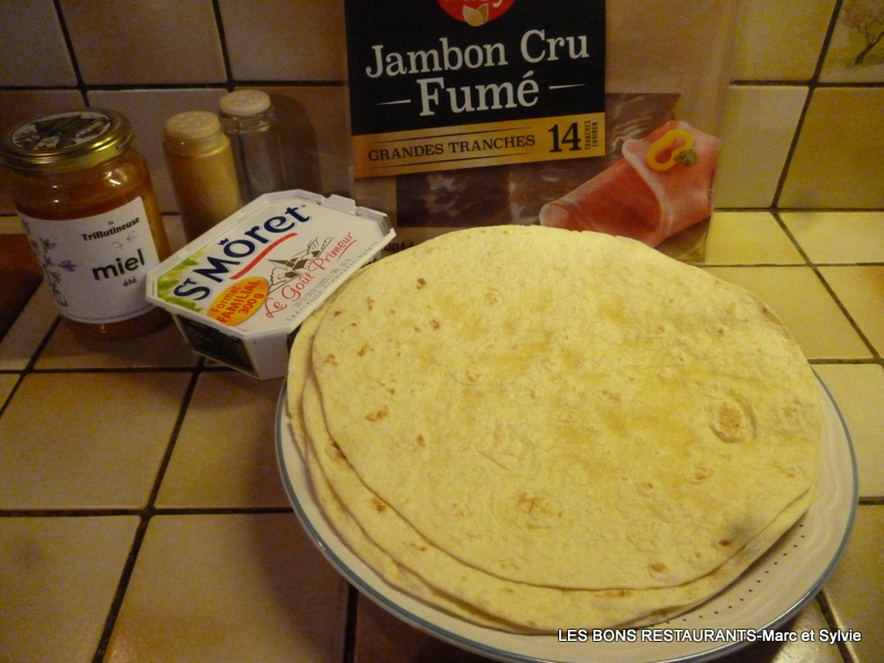 Aujourd'hui, je cuisine des wraps au jambon fumé, st moret et miel!