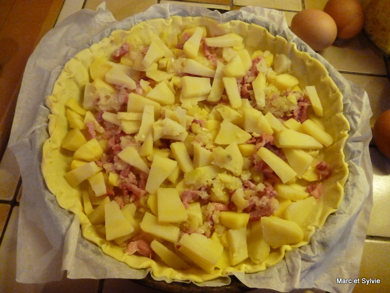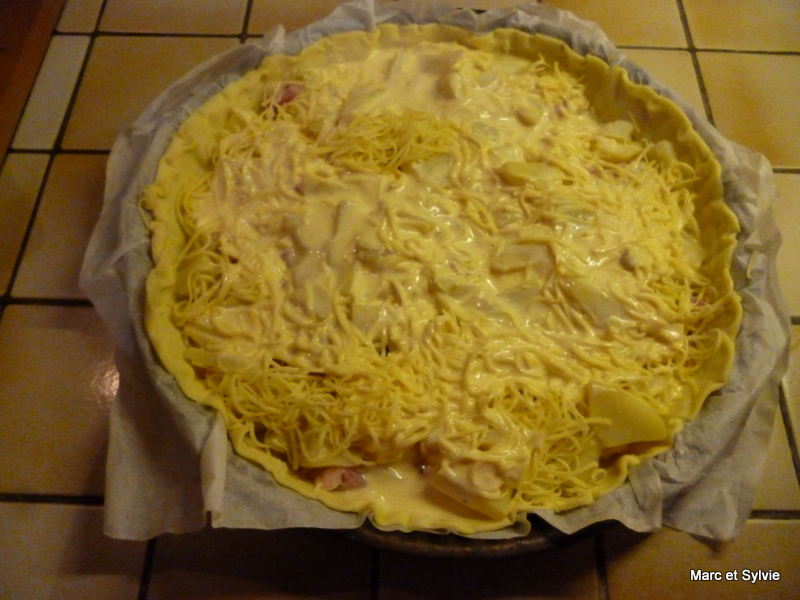 Versez cette préparation sur les pommes de terre. Glissez la quiche dans un four à 220° pendant 420 minutes environ (+ou- selon le four).