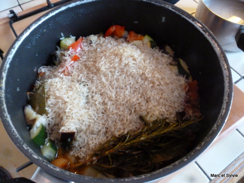 Ajoutez le riz ainsi que 50cl d'eau bouillante.