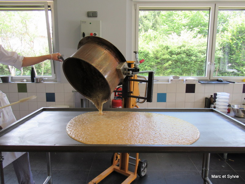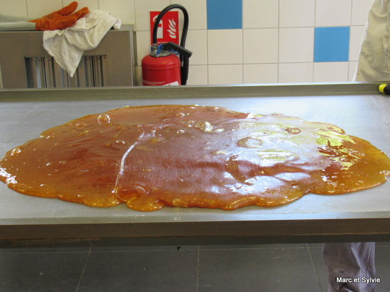 C'est le travail sur table. L'incorporation des ingrédients aromatiques et travail du sucre cuit se fait sur une table froide.