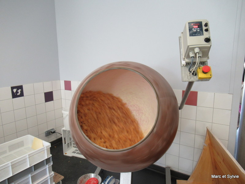 Le givrage est assuré par une turbine! Il assure la protection du bonbon et de ses saveurs, et permet donc de garantir un parfait maintien de ses qualités gustatives. La visite terminée, nous prenons le temps de faire nos provisions!