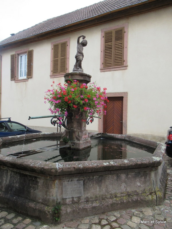 Cette fontaine est datée du 13e siècle. La statuette posée sur la fontaine représente l'enfant à la grappe de raisin. Le Christ du sculpteur Paul Windecker !