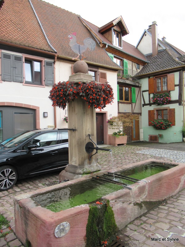 Cette fontaine est surmontée d'un coq "patriotique" resté en place même durant les différentes annexions allemandes que connut la région.