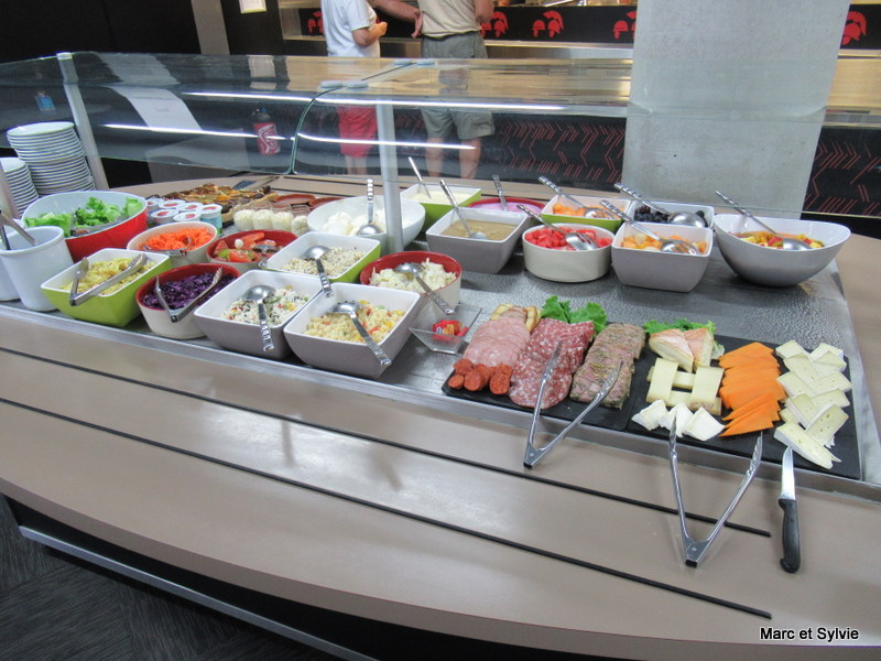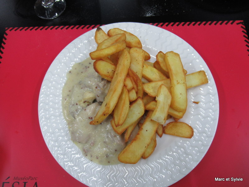 Au niveau du buffet d'entrées et de desserts, seul personnel est autorisé à nous servir. Vraiment un grand coup de chapeau à tous. Pour la suite du repas nous avons tous les trois choisi l'émincé de volaille aux champignons.