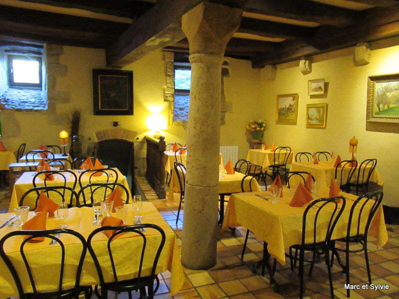 Au centre du restaurant, une colonne de pierre romaine fut placée là pour supporter l'imposante poutre du plafond.