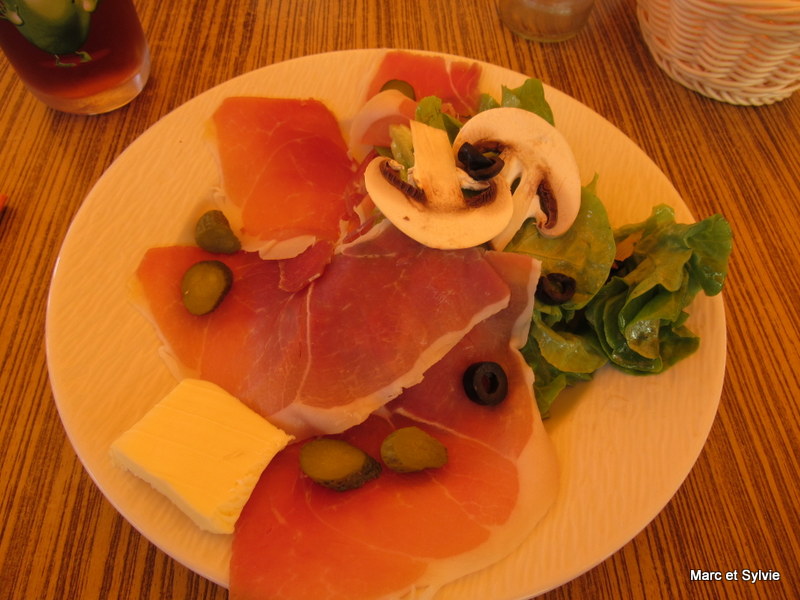 En entrée, l'assiette de jambon cru provenant de la charcuterie Gautier de Autun est délicieuse.