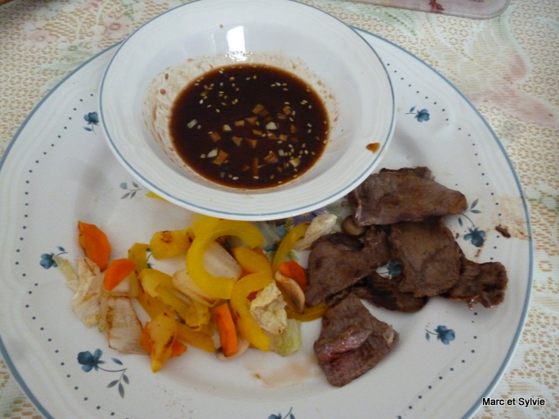 Losque la viande et les légumes seront cuits, il aura à les tremper dans la sauce avant de déguster.