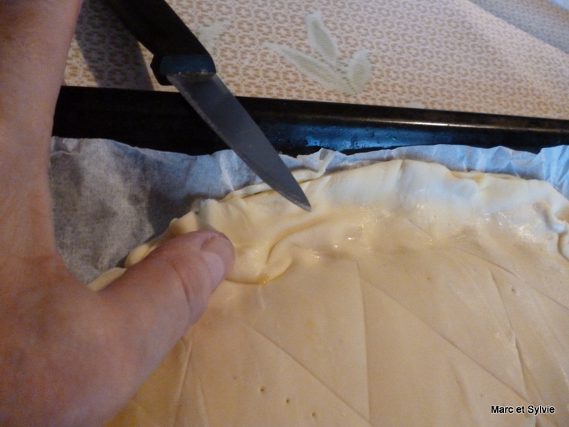 À l'aide d'un couteau vous faites un dessin sans appuyer trop fort mais tous de même afin que le dessin s'imprègne bien. 3-Réaliser des stries à l'aide d'un couteau sur tout le bord de la galette.