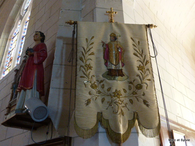 Un clocher carré amorti par une flèche, flanque la nef du côté méridional.