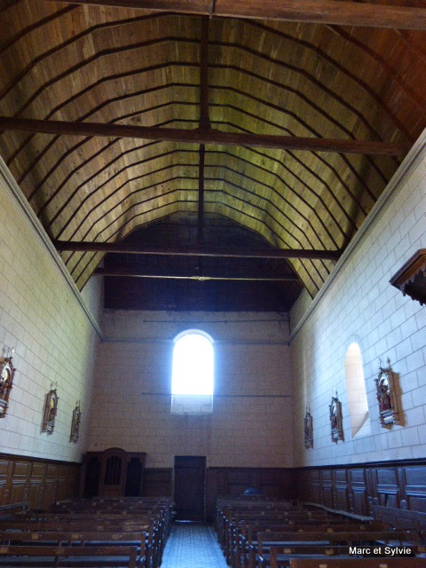 L'église se compose d'une nef prolongée à l'ouest au 17e siècle, et reliée au pignon nord de l'aile est du château.
