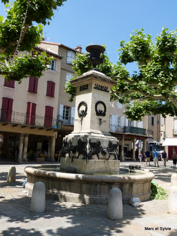 Nous arrivons place Foch et nous ressentons une ambiance de village avec ses terrasses de café et de restaurants à l’ombre de 2 superbes platanes taillés en parasols géants.
