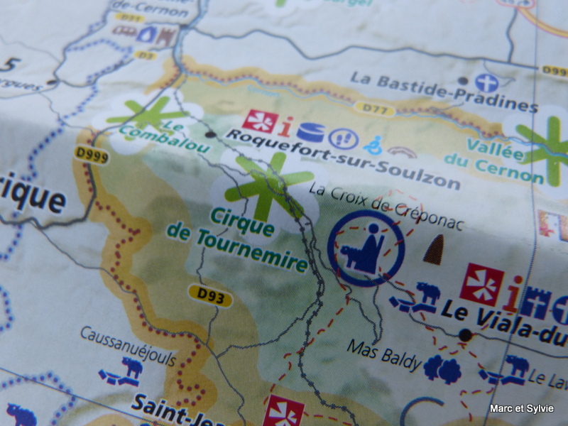 | Tournemire est une commune située dans le département du Cantal, en région d'Auvergne-Rhône-Alpes. Lors de notre dernier séjour dans cette région, nous nous sommes arrêtés à Tournemire pour y admirer ce fameux cirque! Vous pouvez voir comment on découvre les sites à visiter....à l'aide d'une carte....tout est dit! Vous pouvez voir ou revoir nos balades en région Auvergne-Rhône-Alpes en cliquant sur ce lien! (5 clichés) Le cirque de Tournemire est une zone géologique remarquable entre les caves de Roquefort et les Sites Templiers et Hospitaliers. C'est à ses pieds qu'a été découvert dans les "terres grises" (argile) le squelette entier d'un reptile marin surprenant âgé de 180 millions d'années : l'Occitanosaurus tournemirensis. Situé entre les avant-Causses et le Larzac, les falaises du cirque de Tournemire sont le refuge de nombreux rapaces. C’est aussi un espace apprivoisé par les bergers. La lavogne, les jasses et la ferme fortifiée montrent l’ingéniosité des éleveurs pour vivre dans cet environnement sans eau.
