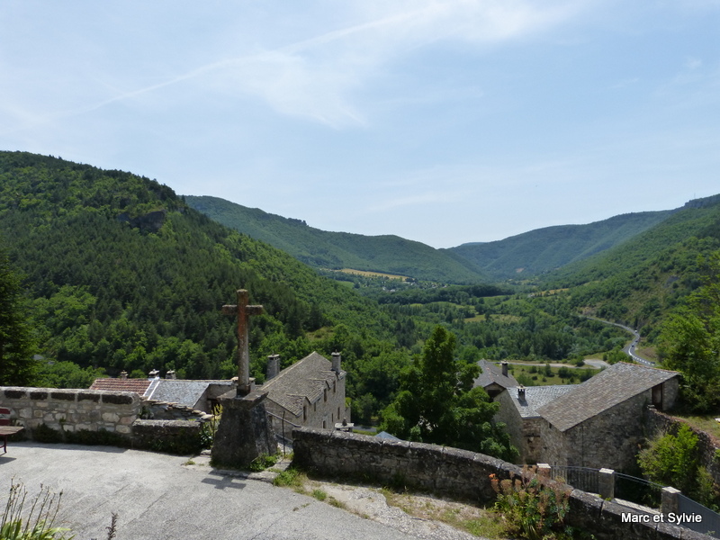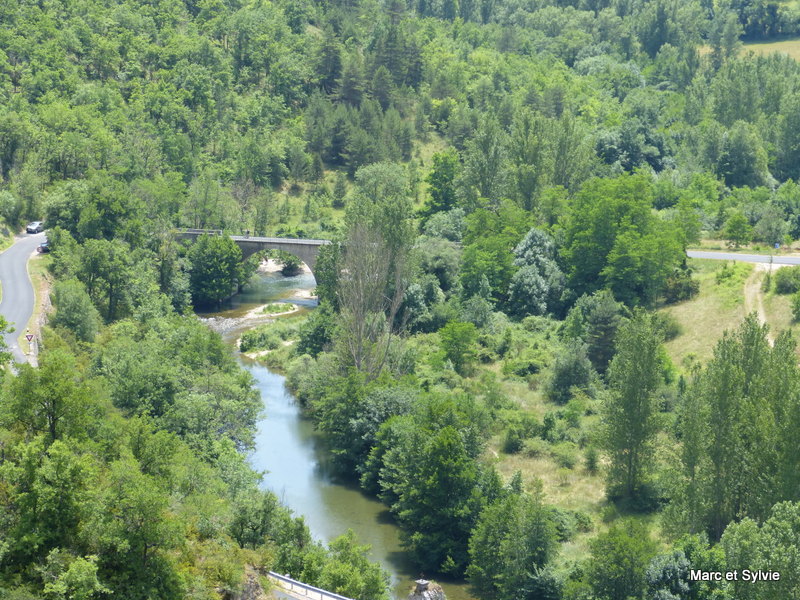 Arrêtons-nous devant cette splendide vue sur la vallée de la Dourbie et de Trévézel. Le pont de Prade qui enjambe la Dourbie en deux arches date du 14e siècle.