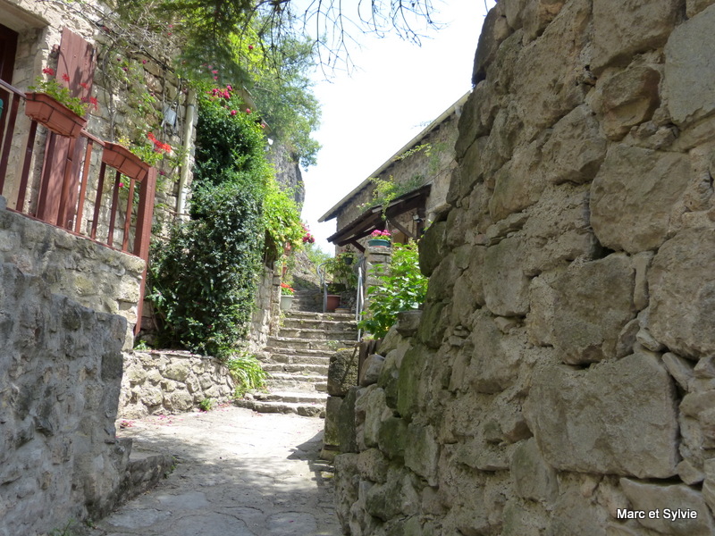 (11 clichés) Le village est construit sur un éperon rocheux, en calcaire dolomitique. C’est un petit village haut perché à 558 m d’altitude qui fut choisi comme poste de guet par les Gaulois puis par les Romains.