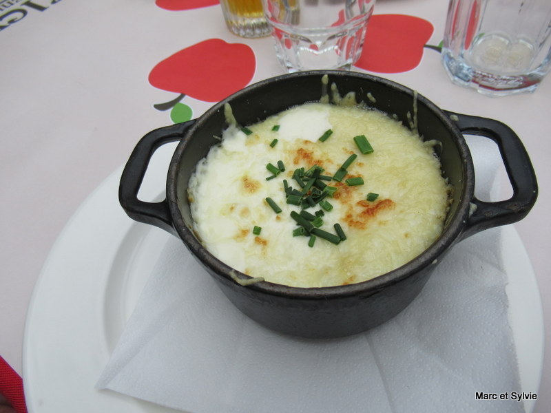 Nous avons choisi notre menu sur l'ardoise proposée ce jour là ! Nicolas et Marc prennent l'oeuf cocotte au camembert.