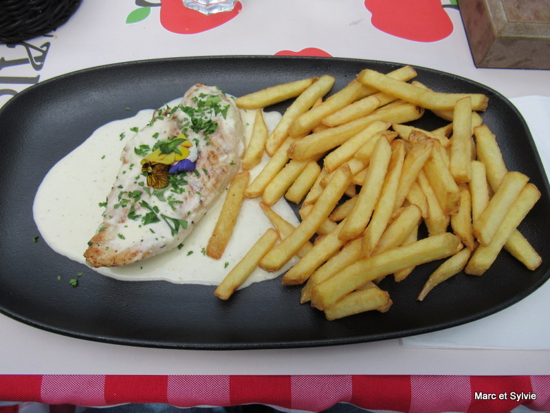 Nous sommes à Honfleur, le pays du camembert et, pour le plat, nous accordons tous les trois nos violons et choisissons l'escalope de volaille au camembert. Un petit délice.
