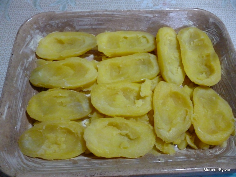 Coupez les pommes de terre en deux puis creusez-les légèrement.