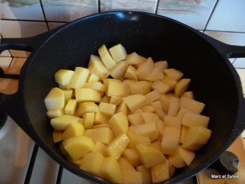 Faite chauffer un filet d'huile de tournesol dans une sauteuse et faites-y dorer les pommes de terre.